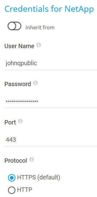 Credentials for NetApp