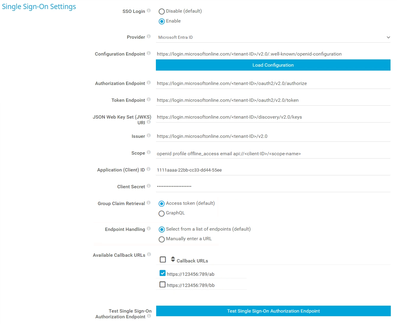 • Microsoft Entra ID: Use Microsoft Entra ID as the SSO provider.