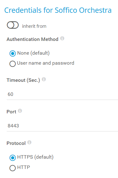 Select if you want to connect without credentials or define credentials for access to the Orchestra platform: