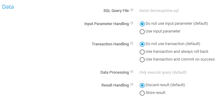 • Do not use imput parameter (default): Execute the SQL query file without using variables.